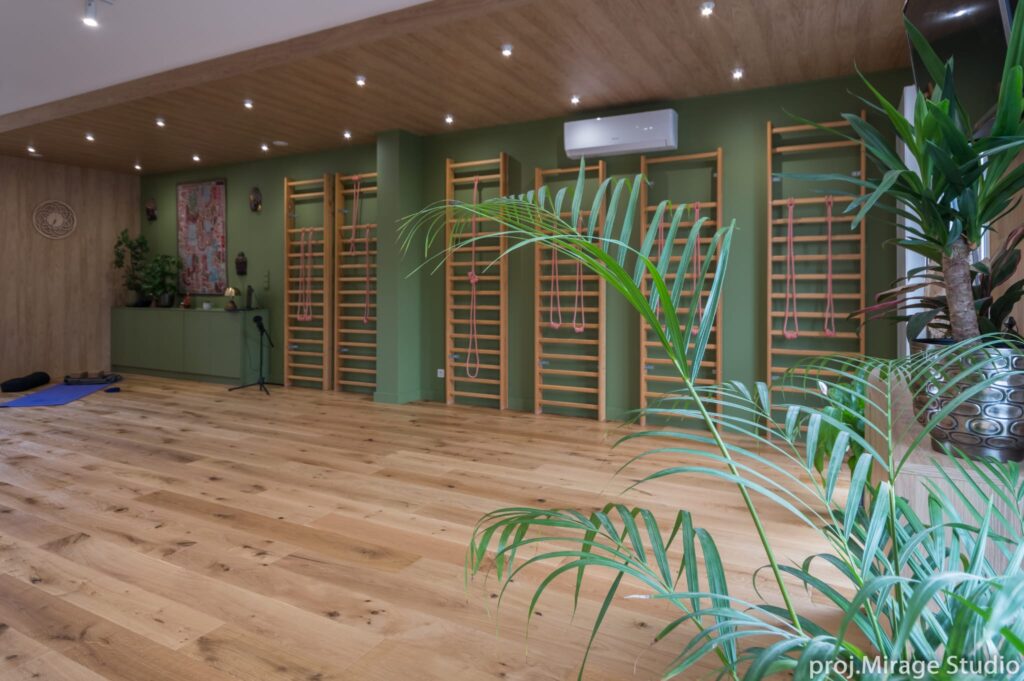 Są przestrzenie, do których po prostu chce się wracać. Nasze studio zaprojektowaliśmy tak, by od progu czuć swobodę: dużo światła, podłoga z prawdziwego drewna, zieleń, harmonia i wszystko, czego potrzeba do bezpiecznej praktyki. Klarowny układ sali ułatwia skupienie, a kameralne grupy i czytelne instrukcje sprawiają, że ruch staje się naturalny i wspierający.